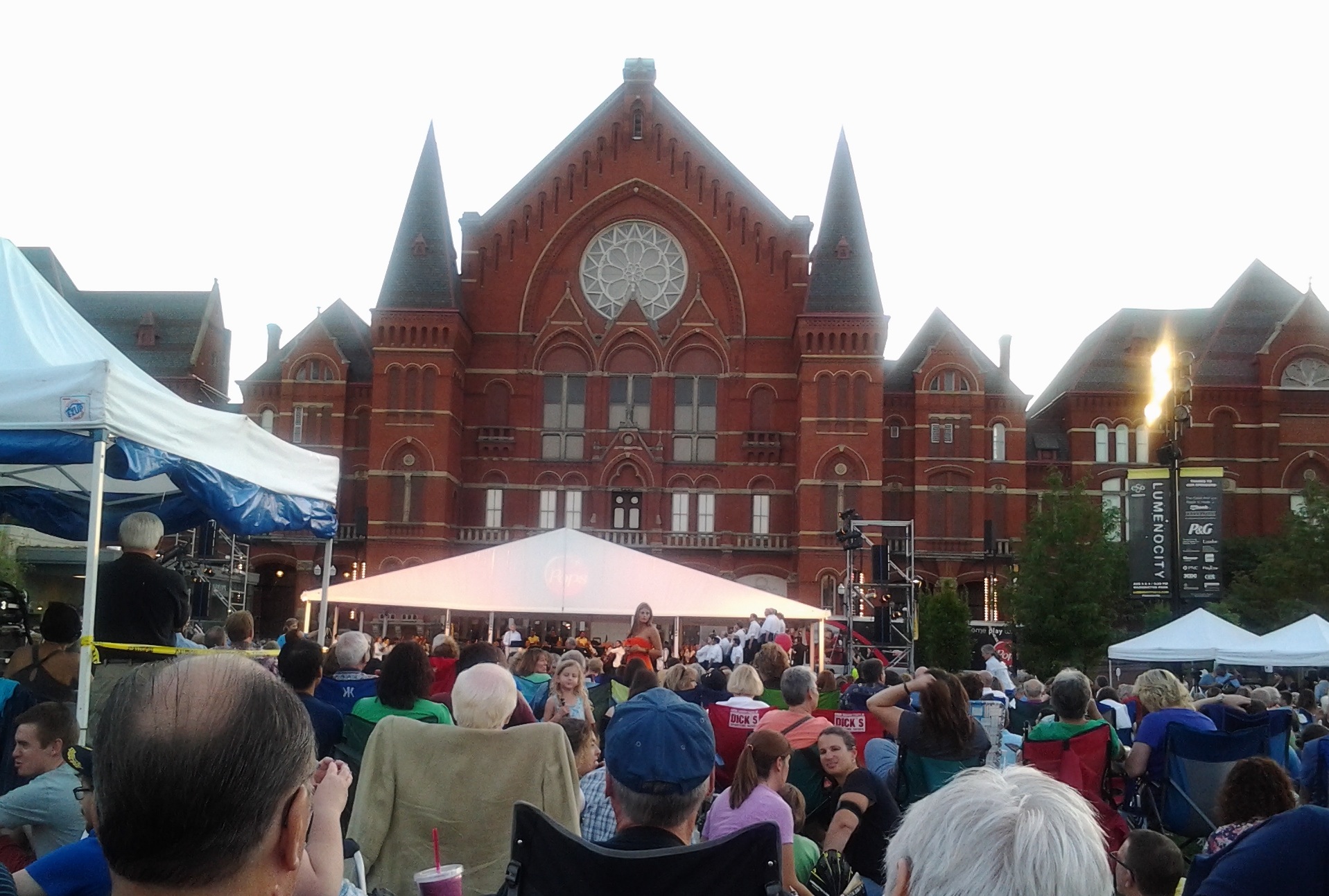 To make up for my absence, I’m offering you a bit of a backlog of photos–all taken from my phone, which doesn’t have such a hot camera. This first one was from last night. You locals will recognize it as Cincinnati’s iconic Music Hall, which borders the newly renovated Washington Park. I was at a symphony concert last night at the park with some friends of mine. This was the inaugural concert for the CSO’s new conductor, and, as the local NPR radio ads attested, it was also a never-before-seen-anywhere-on-planet-Earth outdoor concert and light show.